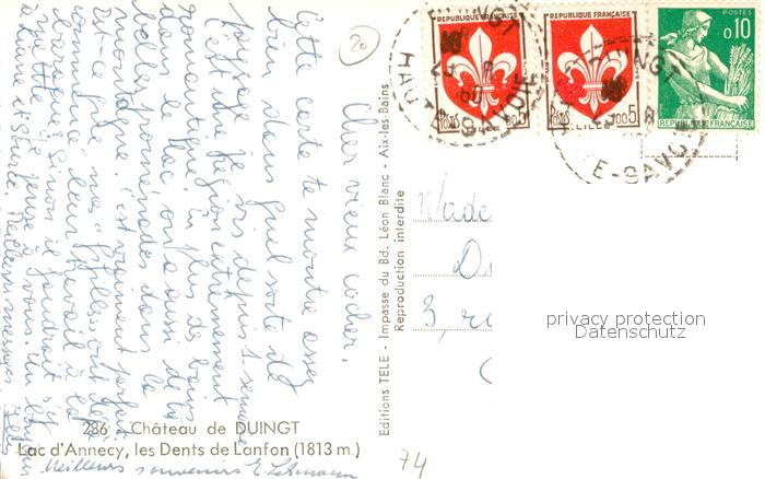 13488838 carte postale Duingt Chateau et les Dents de Lanfon Alpes postalisch gelaufen Erhaltung siehe scans [FriedD77] KatCode: 11170074174108