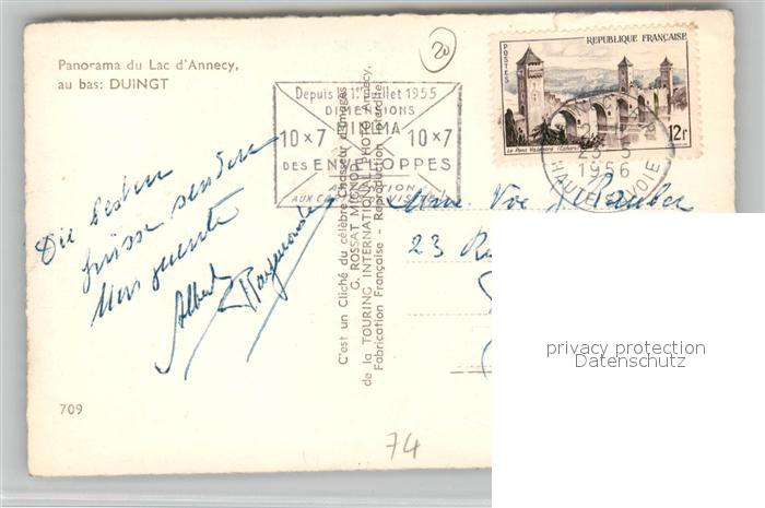 13489465 carte postale Duingt Panorama Lac d Annecy Alpes postalisch gelaufen Erhaltung siehe scans [FriedD77] KatCode: 11170074174108