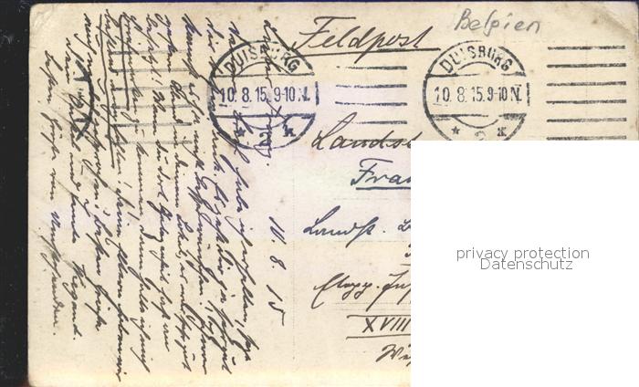 12411979 carte postale Duisburg Belgien Portrait WK1 postalisch gelaufen Feldpost Erhaltung siehe scans KatCode: 11070024002815