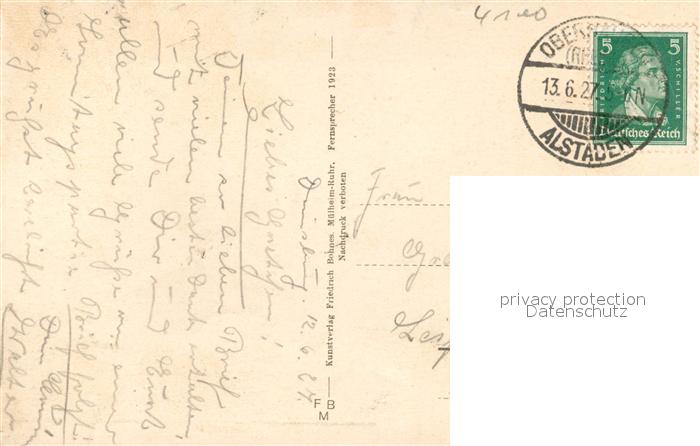 43345912 alte Postkarte Duisburg Ruhr Burgruine Kaiserberg Denkmal Kaiser Wilhelm I mit Aussichtsturm Wasserfall postalisch gelaufen Erhaltung siehe scans [WerneD78] KatCode: 11110005112000