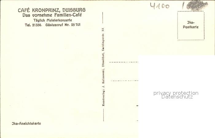 31821858 Duisburg Ruhr Cafe Kronprinz postalisch nicht gelaufen Erhaltung siehe scans KatCode: 11110005112000