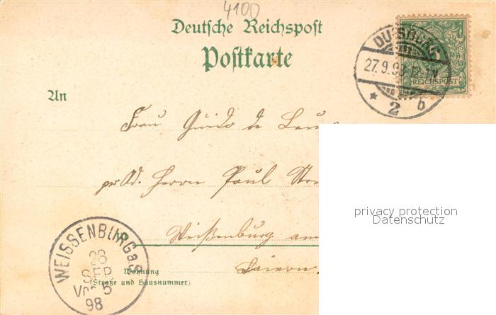 73749367 alte Postkarte Duisburg Ruhr Denkmal Kaiser Wilhelm I postalisch gelaufen Erhaltung siehe scans [WerneD78] KatCode: 11110005112000