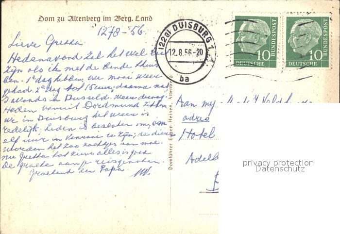 72412101 alte Postkarte Duisburg Ruhr Dom Altenberg Bergland postalisch gelaufen Erhaltung siehe scans KatCode: 11110005112000
