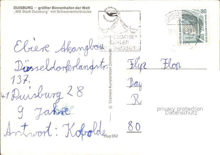 72378662 alte Postkarte Duisburg Ruhr Groesster Binnenhafen der Welt postalisch gelaufen Erhaltung siehe scans KatCode: 11110005112000