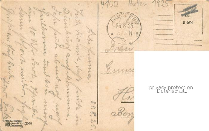 73696967 alte Postkarte Duisburg Ruhr Hafen postalisch gelaufen Erhaltung siehe scans [LiesaD40] KatCode: 11110005112000