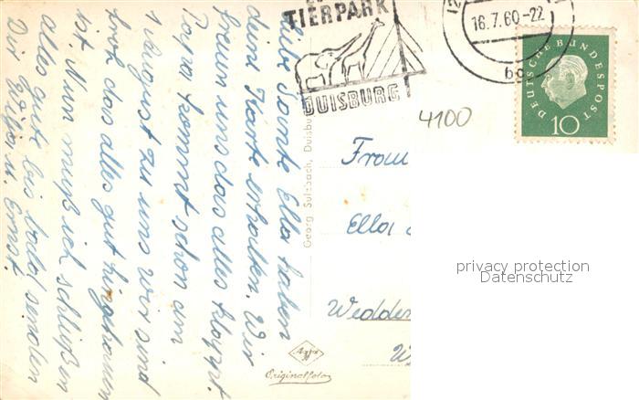 73696937 alte Postkarte Duisburg Ruhr Hafen mit Rheinbruecke Tierpark Hauptbahnhof Stadthaus mit Oper postalisch gelaufen Erhaltung siehe scans [LiesaD40] KatCode: 11110005112000