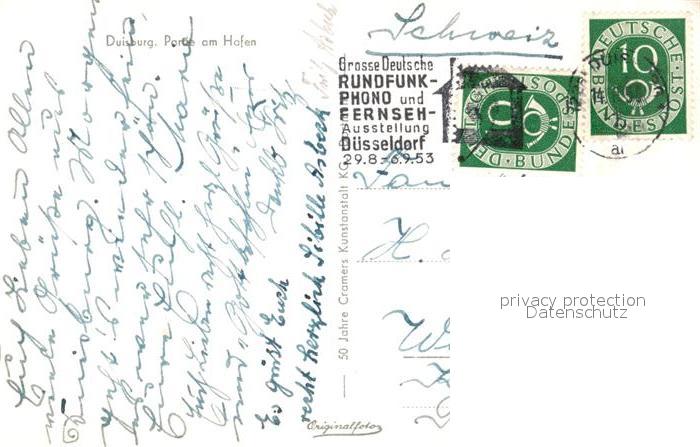 73296664 alte Postkarte Duisburg Ruhr Hafenpartie postalisch gelaufen Erhaltung siehe scans [LiesaD40] KatCode: 11110005112000