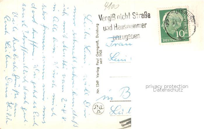 73696934 alte Postkarte Duisburg Ruhr Homberger Rheinbruecke Tierpark Koenig- Heinrich- Platz Hafenmund postalisch gelaufen Erhaltung siehe scans [LiesaD40] KatCode: 11110005112000