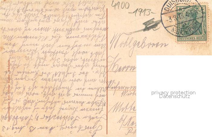 73696915 alte Postkarte Duisburg Ruhr Kaiser Wilhelm- Denkmal und Wasserturm postalisch gelaufen Erhaltung siehe scans [LiesaD40] KatCode: 11110005112000