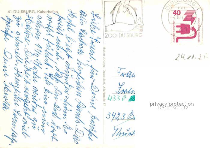 72846659 alte Postkarte Duisburg Ruhr Kaiserhafen postalisch gelaufen Erhaltung siehe scans [KathaD81] KatCode: 11110005112000
