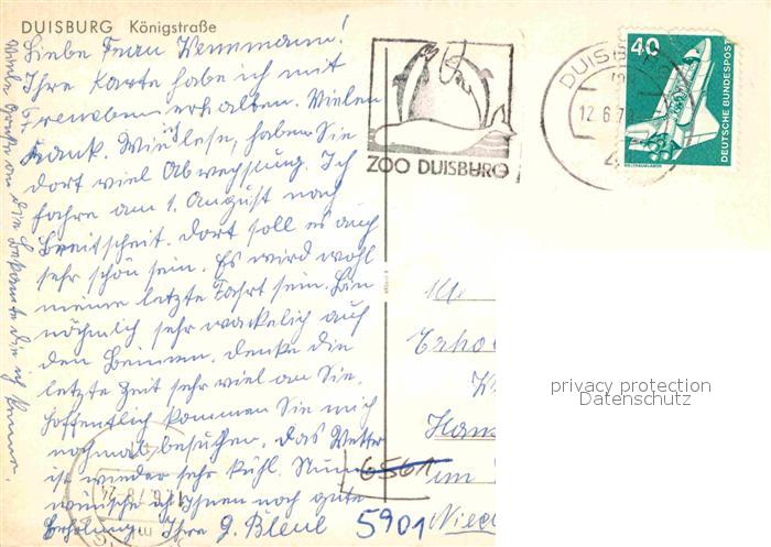 72909448 alte Postkarte Duisburg Ruhr Koenigstrasse postalisch gelaufen Erhaltung siehe scans [LiesaD40] KatCode: 11110005112000