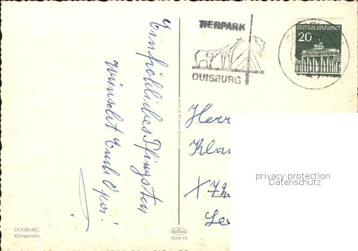 72523228 alte Postkarte Duisburg Ruhr Koenigstrasse postalisch gelaufen Erhaltung siehe scans KatCode: 11110005112000