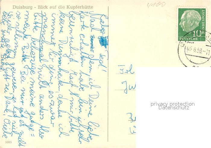 43347152 alte Postkarte Duisburg Ruhr Kupferhuette postalisch gelaufen Erhaltung siehe scans [WerneD78] KatCode: 11110005112000