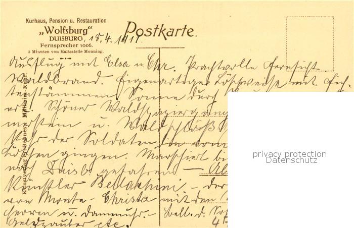 43190953 Duisburg Ruhr Kurhaus Pension Restauration Wolfsburg postalisch nicht gelaufen Erhaltung siehe scans [FriedD77] KatCode: 11110005112000
