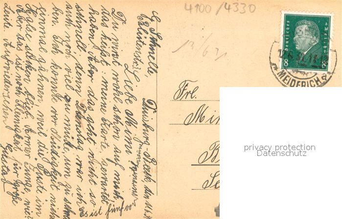 73696633 alte Postkarte Duisburg Ruhr Kurhaus Raffelberg postalisch gelaufen Erhaltung siehe scans [LiesaD40] KatCode: 11110005112000