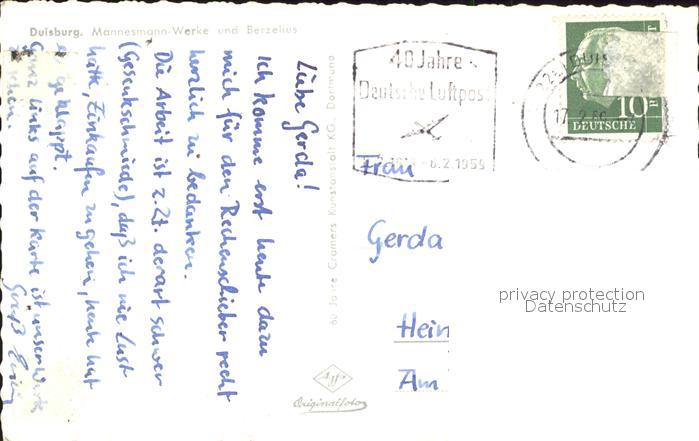 31841358 alte Postkarte Duisburg Ruhr Mannesmann-Werke Berzelius Fliegeraufnahme postalisch gelaufen Erhaltung siehe scans KatCode: 11110005112000