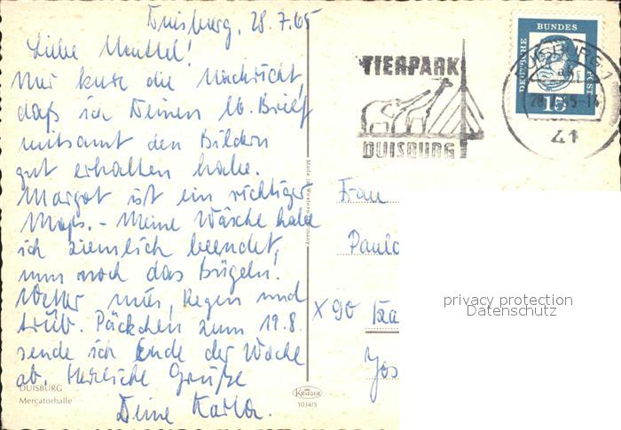 72115514 alte Postkarte Duisburg Ruhr Mercatorhalle postalisch gelaufen Erhaltung siehe scans KatCode: 11110005112000