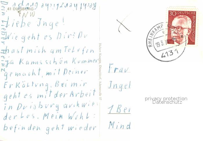 72889815 alte Postkarte Duisburg Ruhr Mercatorhalle Kaiserhafen Stadttheater Rheinbruecke Stadtautobahn postalisch gelaufen Erhaltung siehe scans [FriedD77] KatCode: 11110005112000