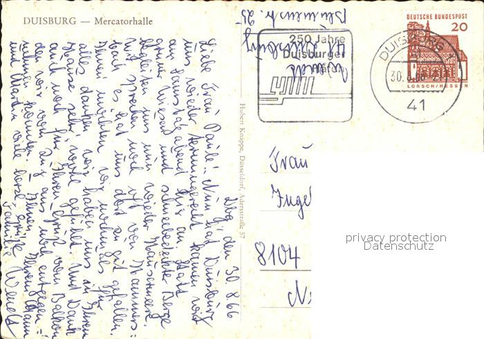 72590338 alte Postkarte Duisburg Ruhr Mercatorhallen postalisch gelaufen Erhaltung siehe scans [AntonD74] KatCode: 11110005112000