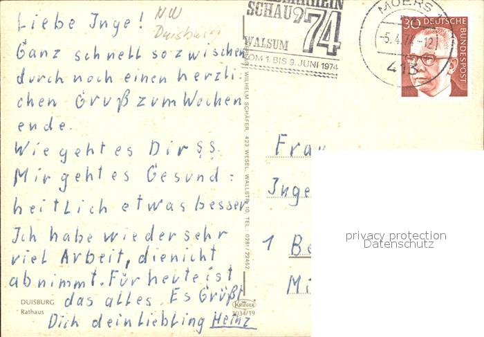 72225614 alte Postkarte Duisburg Ruhr Rathaus postalisch gelaufen Erhaltung siehe scans KatCode: 11110005112000