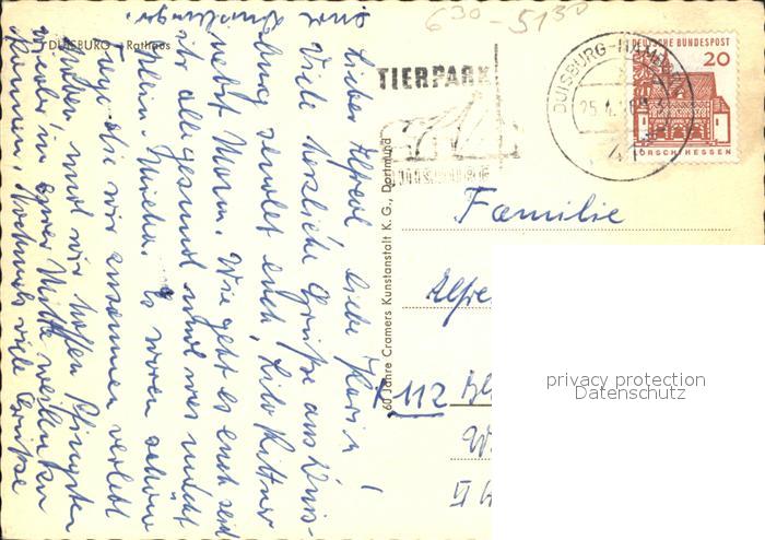 72225609 alte Postkarte Duisburg Ruhr Rathaus postalisch gelaufen Erhaltung siehe scans KatCode: 11110005112000