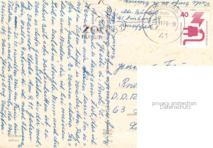 72639326 alte Postkarte Duisburg Ruhr Rathaus Park Brunnen postalisch gelaufen Erhaltung siehe scans [KathaD79] KatCode: 11110005112000