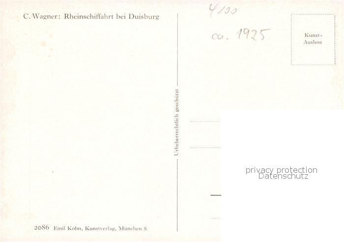 73866061 Duisburg Ruhr Rheinschiffahrt Kuenstlerkarte postalisch nicht gelaufen Erhaltung siehe scans [WerneD78] KatCode: 11110005112000