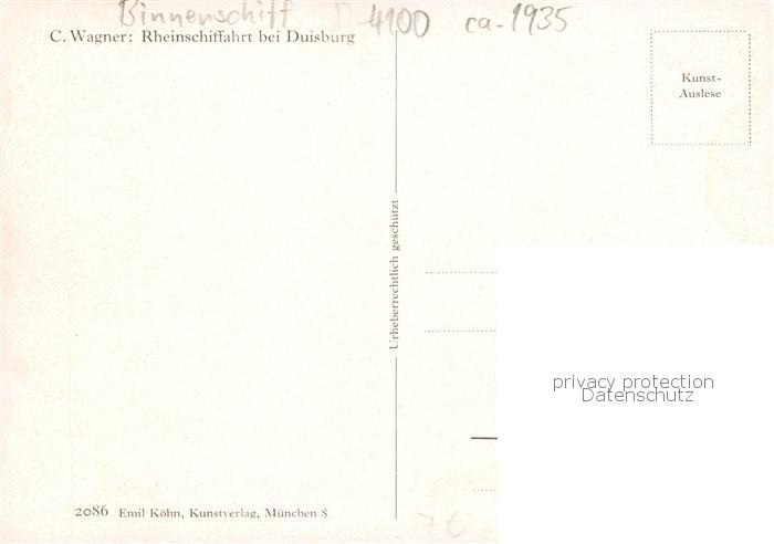 73866062 Duisburg Ruhr Rheinschiffahrt Kuenstlerkarte postalisch nicht gelaufen Erhaltung siehe scans [WerneD78] KatCode: 11110005112000