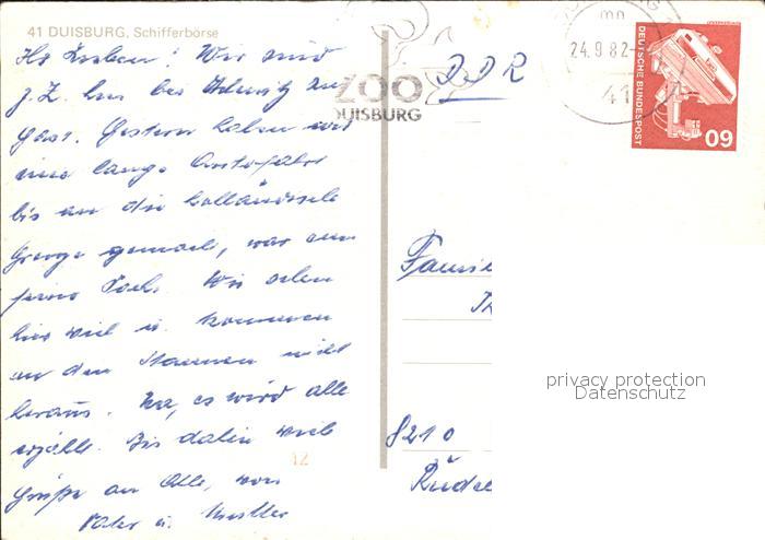 72456288 alte Postkarte Duisburg Ruhr Schifferboerse postalisch gelaufen Erhaltung siehe scans KatCode: 11110005112000