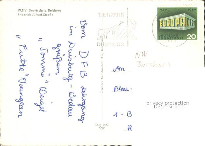 72225615 alte Postkarte Duisburg Ruhr Sportschule postalisch gelaufen Erhaltung siehe scans KatCode: 11110005112000