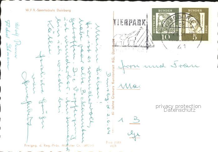 72580516 alte Postkarte Duisburg Ruhr Sportschule WFV postalisch gelaufen Erhaltung siehe scans [KathaD79] KatCode: 11110005112000