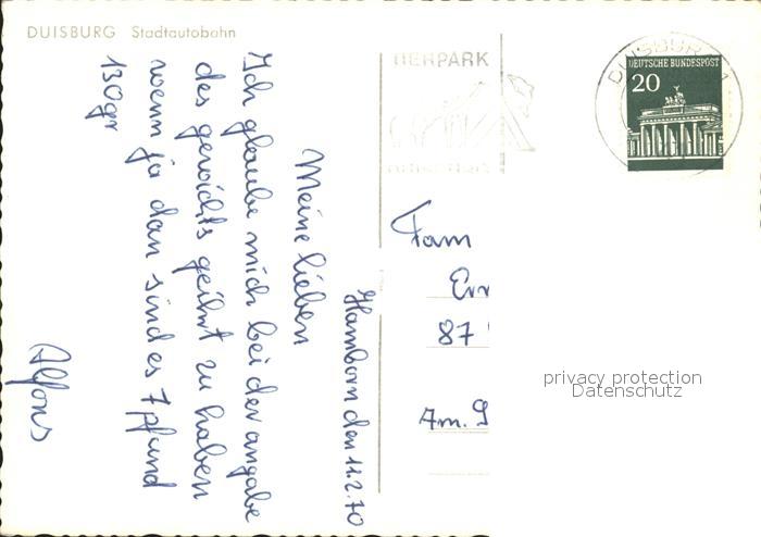 72291236 alte Postkarte Duisburg Ruhr Stadtautobahn postalisch gelaufen Erhaltung siehe scans KatCode: 11110005112000