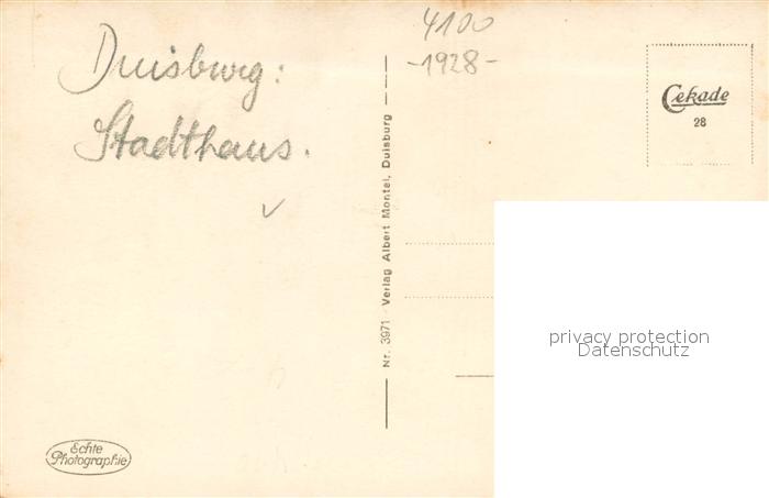 73708091 Duisburg Ruhr Stadthaus postalisch nicht gelaufen Erhaltung siehe scans [LiesaD40] KatCode: 11110005112000