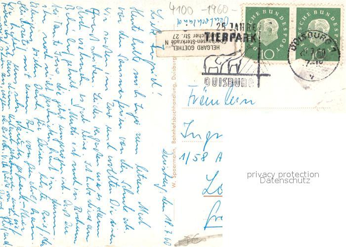 73697402 alte Postkarte Duisburg Ruhr Tierpark postalisch gelaufen Erhaltung siehe scans [LiesaD40] KatCode: 11110005112000