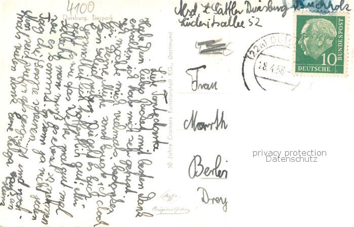 73696922 alte Postkarte Duisburg Ruhr Tierpark postalisch gelaufen Erhaltung siehe scans [LiesaD40] KatCode: 11110005112000