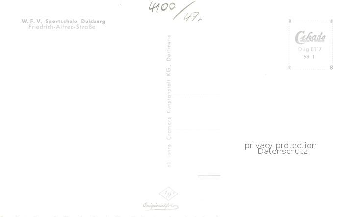 73696854 Duisburg Ruhr W.F.V. Sportschule Innen postalisch nicht gelaufen Erhaltung siehe scans [LiesaD40] KatCode: 11110005112000
