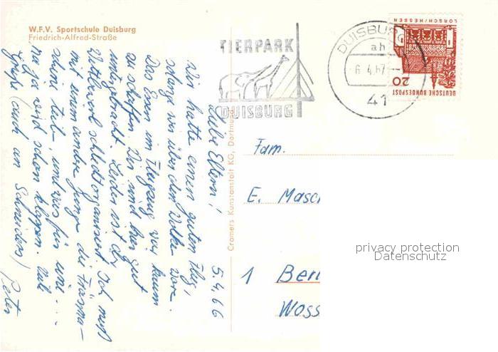 72750438 alte Postkarte Duisburg Ruhr WFV Sportschule Gaststaette Gartenterrasse postalisch gelaufen Erhaltung siehe scans [FriedD77] KatCode: 11110005112000