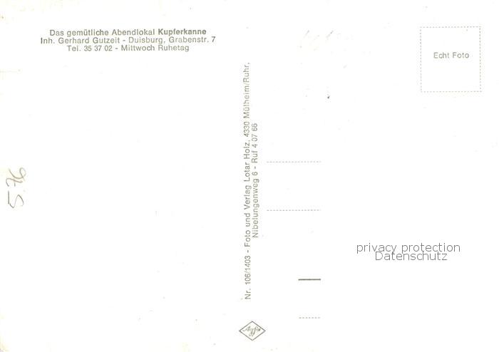 73761976 Duisburg Ruhrort Abendlokal Kupferkanne Gastraum Bar postalisch nicht gelaufen Erhaltung siehe scans [FriedD77] KatCode: 11110005112000