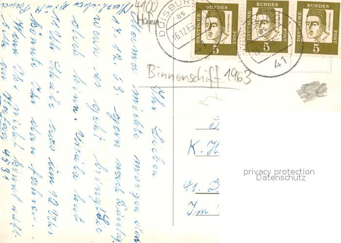 73709135 alte Postkarte Duisburg Ruhrort Binnenschiff Rundfahrten-Angebote postalisch gelaufen Erhaltung siehe scans [LiesaD40] KatCode: 11110005112000