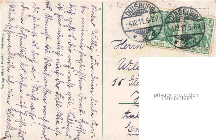 74153050 alte Postkarte DUISBURG Ruhrort Kaiser-Wilhelm-Denkmal Wasserturm im Mondschein Kuenstlerkarte postalisch gelaufen Erhaltung siehe scans [FriedD77] KatCode: 11110005112000