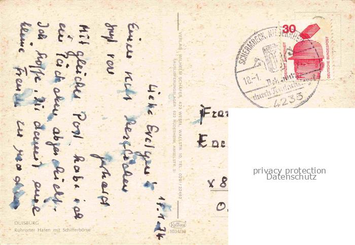 74153551 alte Postkarte DUISBURG Ruhrort Ruhrorter Hafen mit Schifferboerse postalisch gelaufen Erhaltung siehe scans [FriedD77] KatCode: 11110005112000