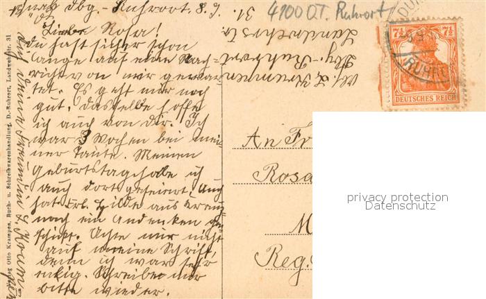 73708141 alte Postkarte Duisburg Ruhrort Schiffer-Boerse und Kriegerdenkmal postalisch gelaufen Erhaltung siehe scans [LiesaD40] KatCode: 11110005112000