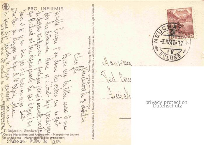74063717 alte Postkarte DUJARDIN Y. Kuenstlerkarte Gelbe Margriten und Anemonen postalisch gelaufen Erhaltung siehe scans [IrynaD87] KatCode: 22240000003210