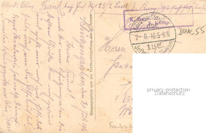 13710582 Dun 55 Maas Unterstadt Feldpost postalisch gelaufen Feldpost – Stempel Erhaltung siehe scans [LiesaD40] Feldpost – Stempel carte postale Lies Katcode 11170055355167
