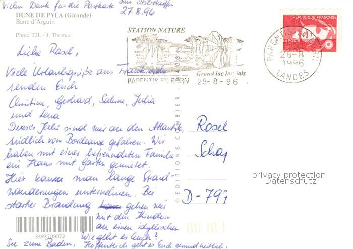 13221364 carte postale Dune du Pyla Fliegeraufnahme Duenen postalisch gelaufen Erhaltung siehe scans [KathaD81] KatCode: 11170033633009