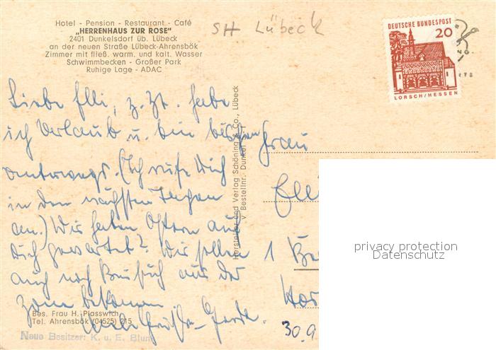 73716486 alte Postkarte Dunkelsdorf Hotel Restaurant Herrenhaus zur Rose Park Pool postalisch gelaufen Erhaltung siehe scans [WerneD78] KatCode: 11110001055001