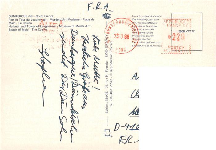 13945737 Dunkerque Duenkirchen 59 Nord Port et Tour du Leughemmer Musee d’Art Moderne Plage de Malo Le Casino postalisch gelaufen Erhaltung siehe scans [WerneD78] carte postale Wern Katcode 11170059459183
