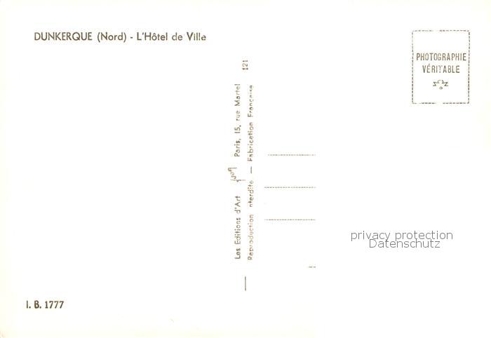 13839577 Dunkerque Duenkirchen Hotel de Ville postalisch nicht gelaufen Erhaltung siehe scans [WerneD78] Wern Katcode 11170059459183