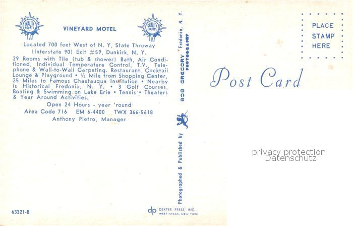 73674373 Dunkirk New York Vineyard Motel Bedroom postalisch nicht gelaufen Erhaltung siehe scans [FriedD77] KatCode: 14140340000000