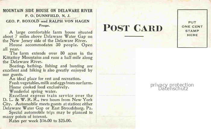 14104347 Dunnfield Hardwick Township New Jersey USA Mountain Side House on Delaware River postalisch nicht gelaufen Erhaltung siehe scans [FriedD77] KatCode: 14140320000000